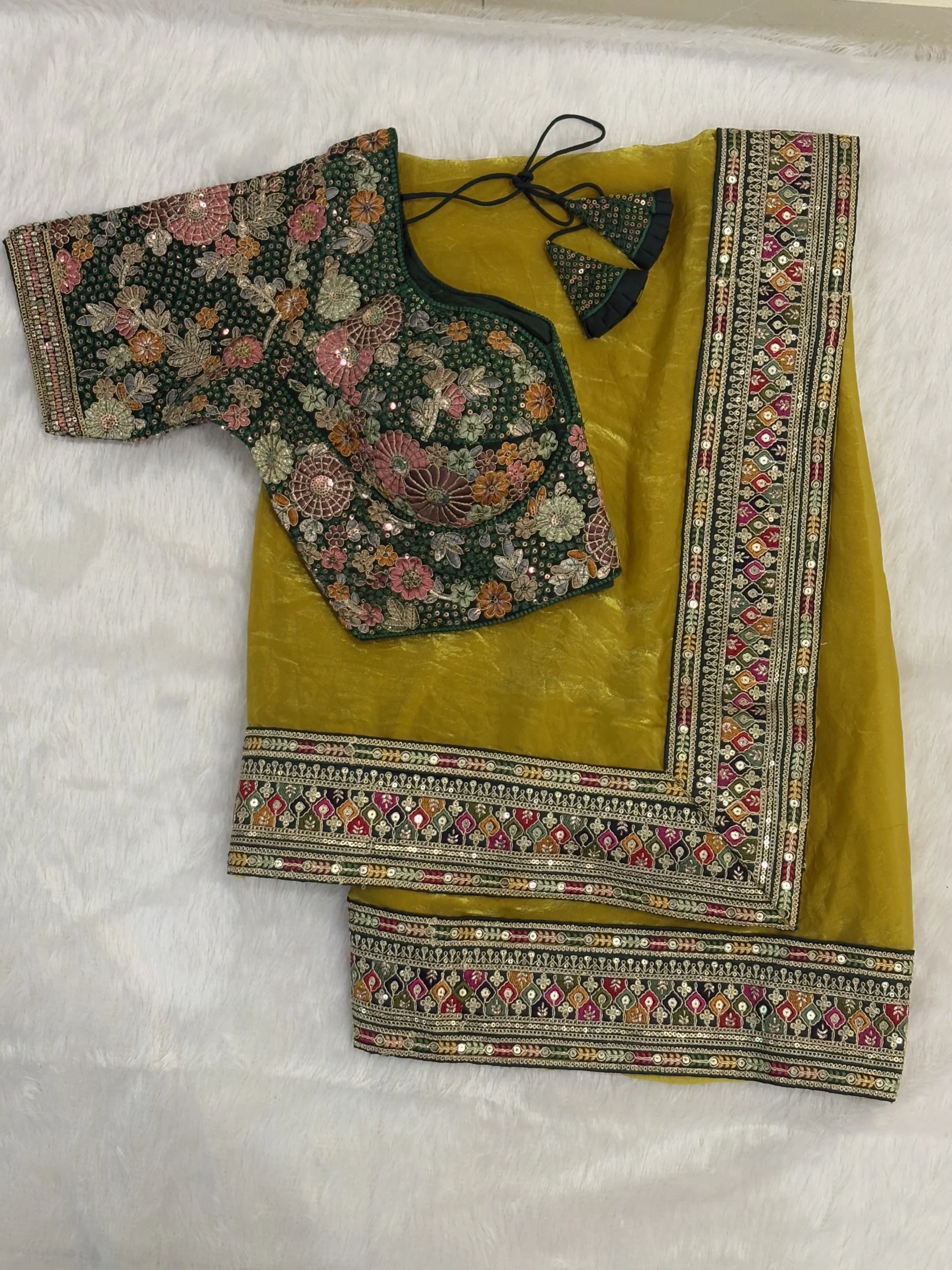 Luminous Lemon Mustard Color Diamond chiffon Saree